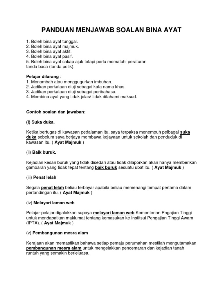 Laman Bahasa Melayu Spm Cadangan Soalan 3 A Membina Ayat Menggunakan Perkataan Diberi Peperiksaan Percubaan Spm Mrsm