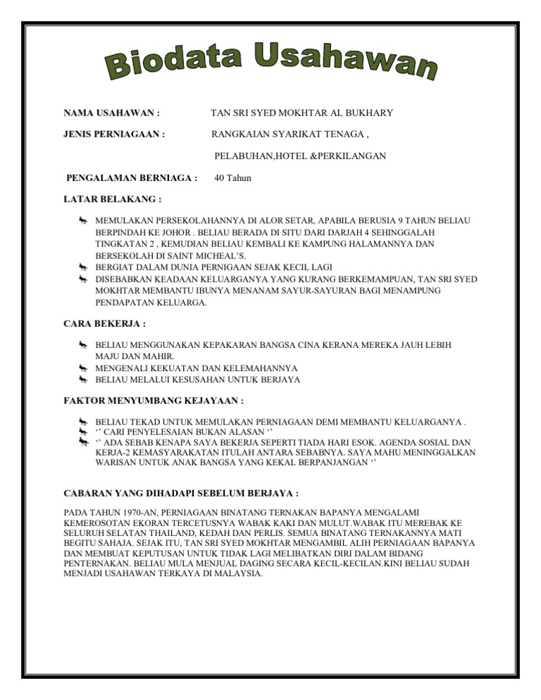 Biodata Usahawan Yang Berjaya Dalam Perniagaan