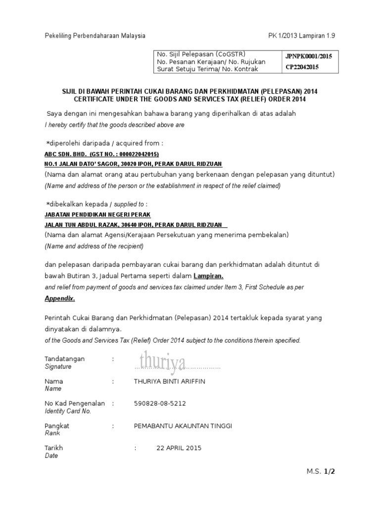 Borang pelepasan gst sekolah. Rm 500 000 00 perniagaan yang tidak mencapai nilai jualan tahunan pembekalan bercukai rm 500 000 00 tidak perlu mendaftar di bawah gst. Gst 6 relieved nilfrom charging gst for supply to a person given relief under item 3 schedule a of gst relief order 2014 27 500 00 total amount payable 27 500 00 sekolah kebangsaan klang no. Pelepasan yang diberikan adalah terhad kepada perkhidmatan pembinaan bangunan sekolah yang masih belum diinvoiskan.