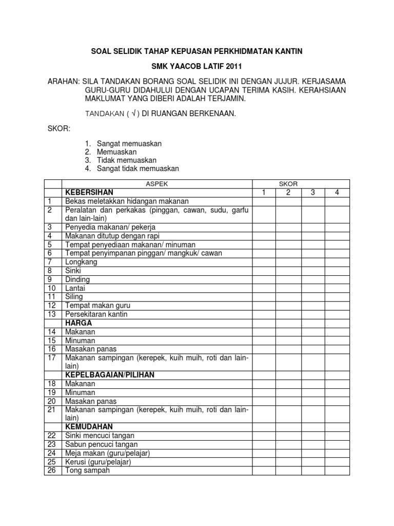 Soal Selidik Tahap Kepuasan An Kantin