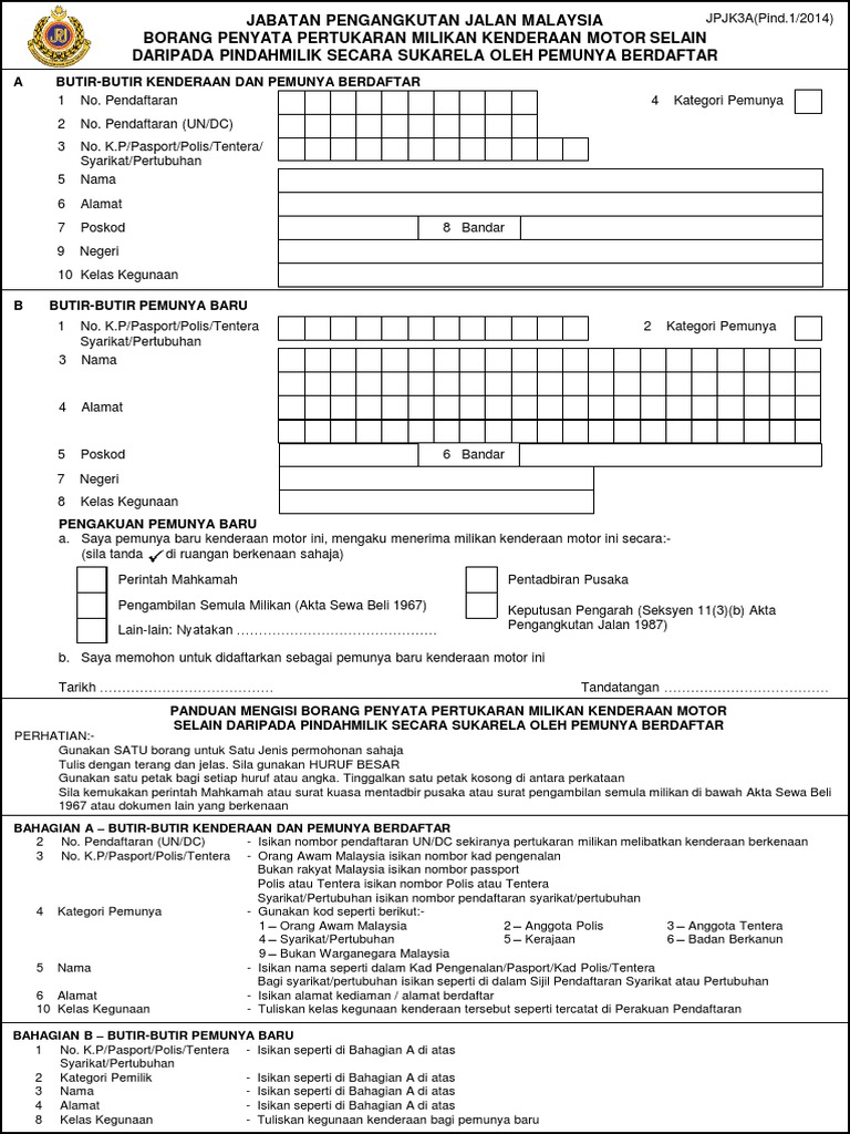 Https Www Jpj Gov My Documents Portlet File Entry 35811 Borang Penyata Pertukaran Milikan Kenderaan Motor Secara Sukarela Oleh Pemunya Berdaftar 28jpj K3 29 Pdf 6eae5d48 Ed7e C7cd 3fe3 9fa48675bd00 Status 0 Download True
