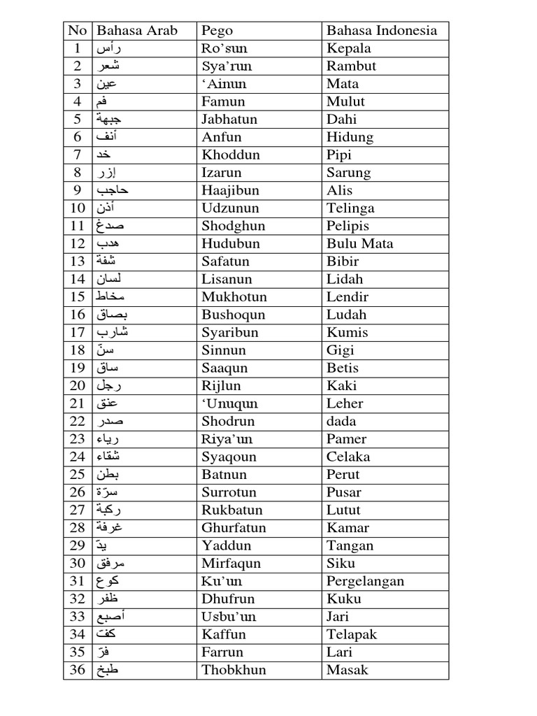 Nama Nama Bagian Tubuh Manusia Dalam Bahasa Arab Alqur Anmulia