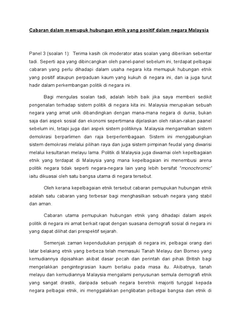 Doc Cabaran Hubungan Etnik Di Malaysia Hidayah Nur Cik Nur Academia Edu