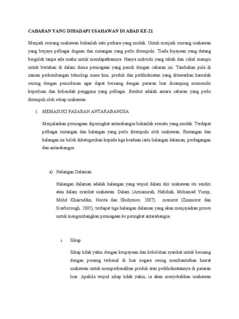 Cabaran Yang Dihadapi Usahawan Di Abad Ke 21