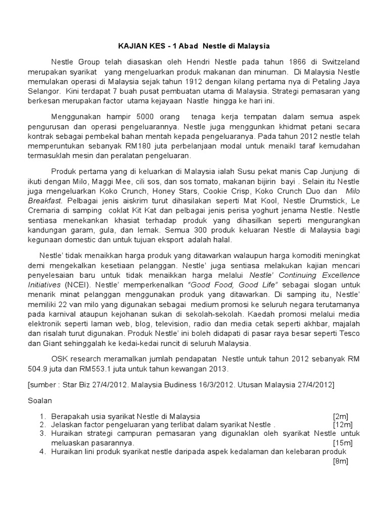 Contoh Kerja Kursus Pengajian Perniagaan Tingkatan 6 Penggal 3 2015 Stpm Campuran Pemasaran Syarikat Nestle Malaysia