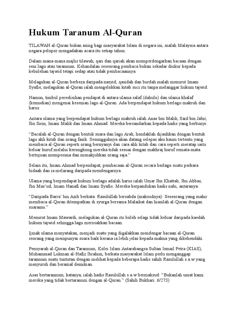 Hukum Taranum Al Quran