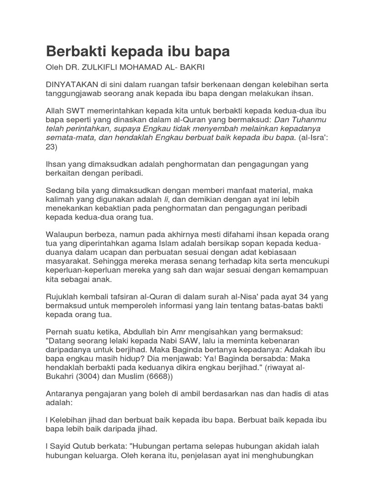 Berbakti Kepada Ibu Bapa Syarahan