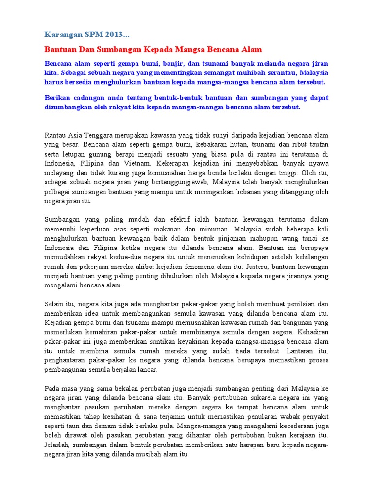 Contoh Karangan Bantuan Kepada Mangsa Bencana Alam Karangan Net