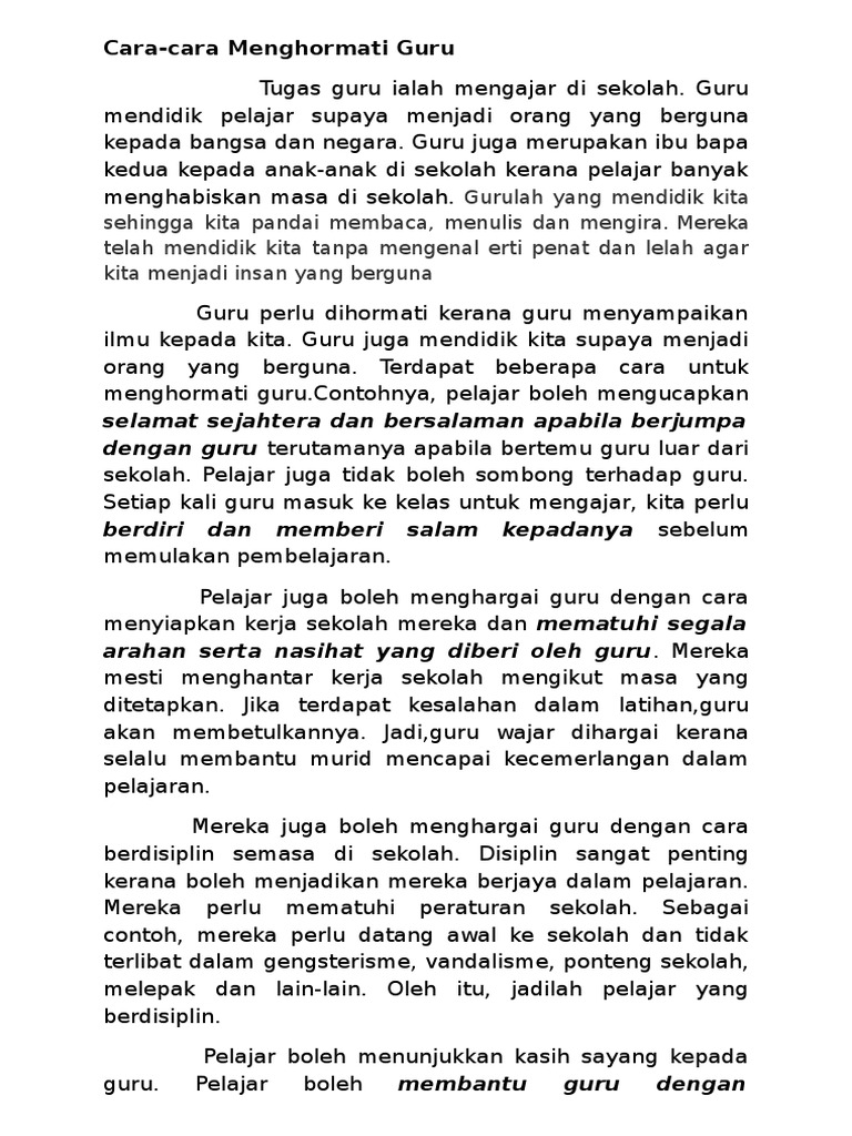 Karangan Cara Cara Menghormati Guru Docx