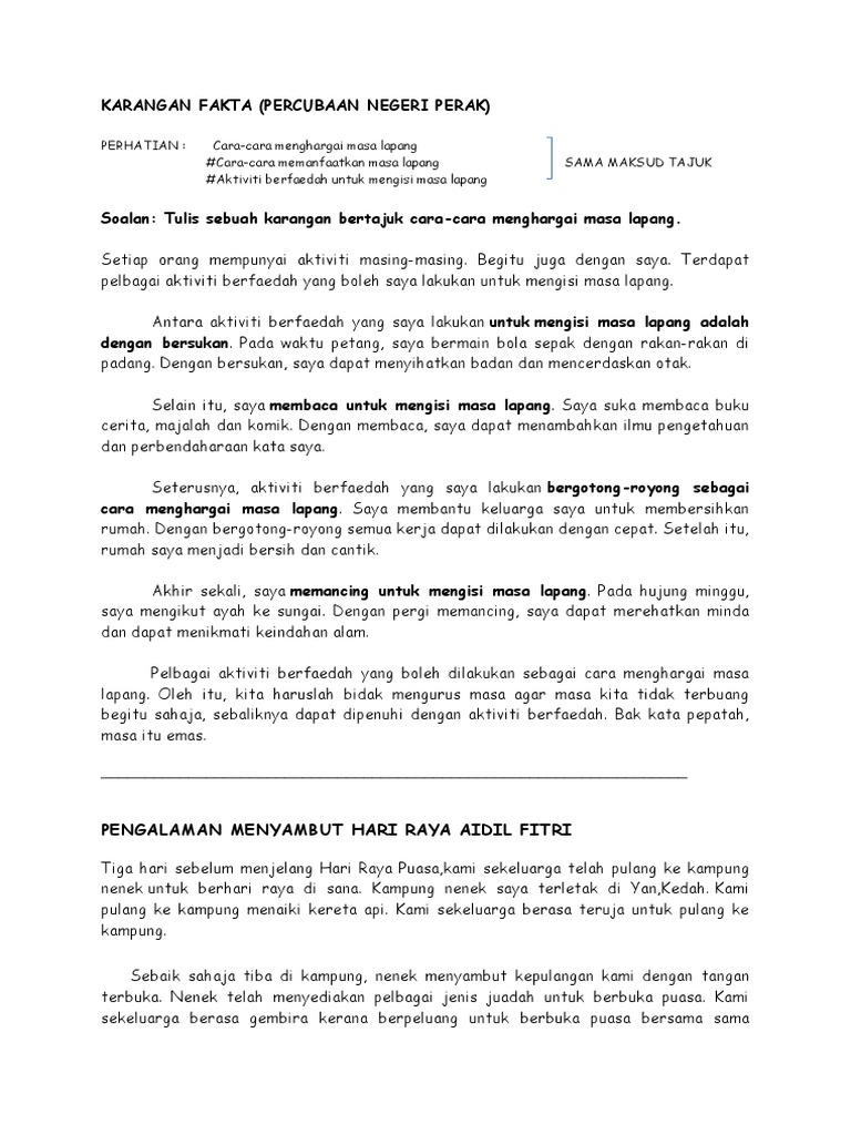 Cikgu Sabar Mohd Karangan Tingkatan 3 Cara Cara Mengisi Masa Lapang