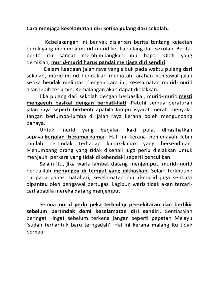 Cara Menjaga Keselamatan Diri Ketika Pulang Dari Sekolah Docx