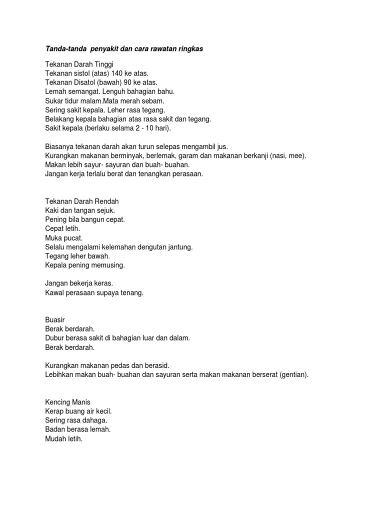 Tanda Tanda Penyakit Dan Cara Rawatan Ringkas