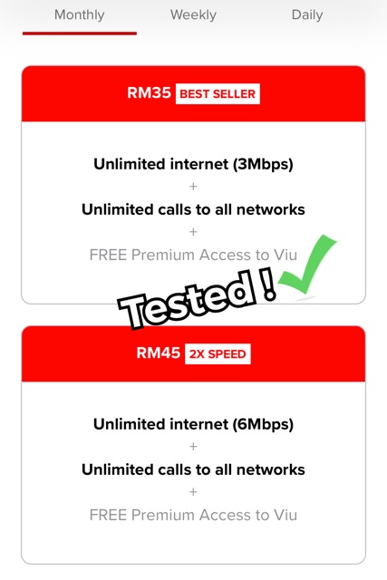Find more about the plans here. Pelan prabayar ini menawarkan bukan sahaja internet tetapi termasuk panggilan tanpa had dalam bentuk harian mingguan dan bulanan. Get prepaid unlimited internet using internet cili padi passes starting at just rm1.