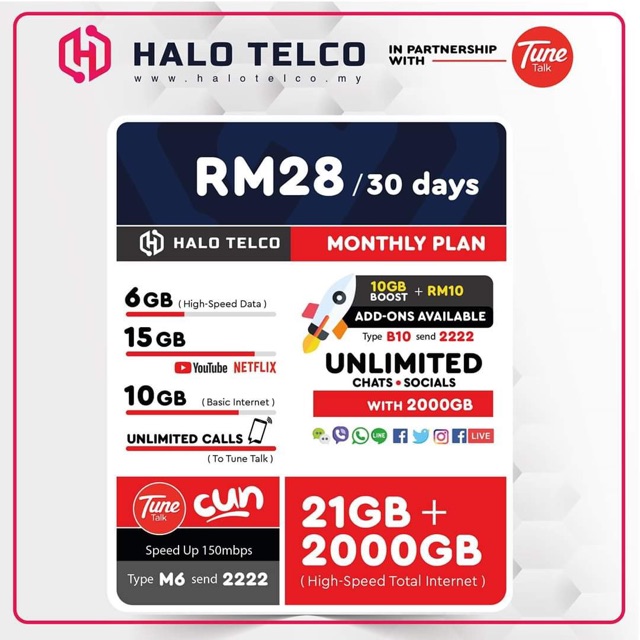 Tunetalk Halo Telco 2000gb Unlimited Fb Instagram Call Whatsapp Shopee Malaysia