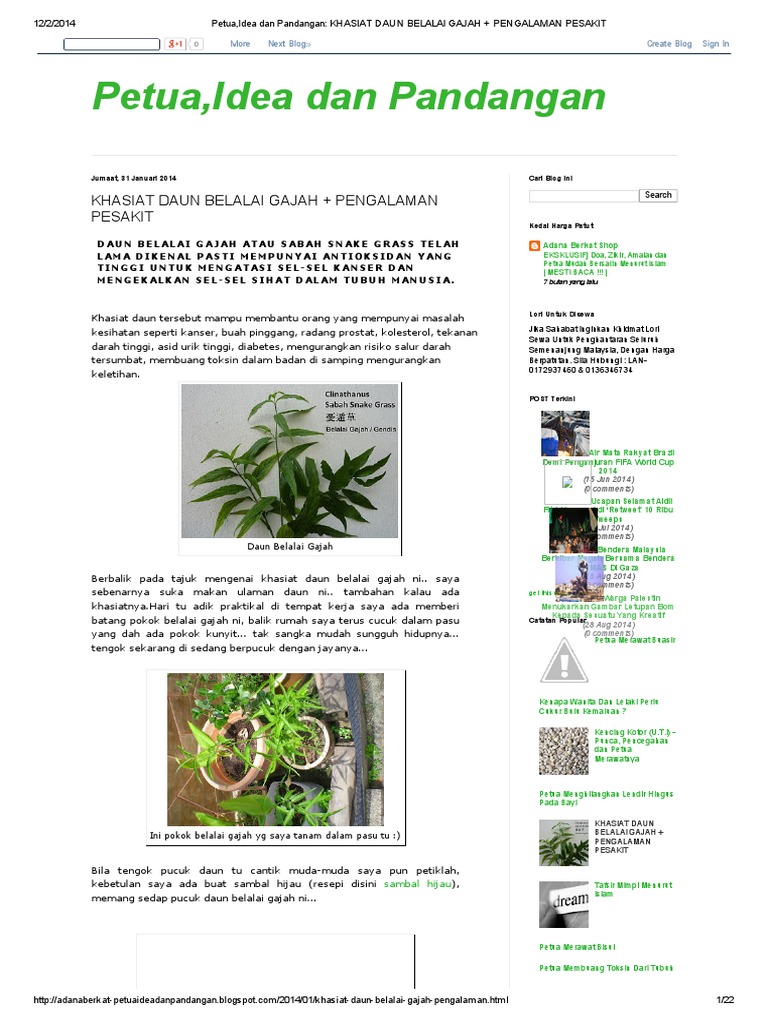 Laman Blog Pertanian Klia Khasiat Daun Belalai Gajah Pengalaman Pesakit
