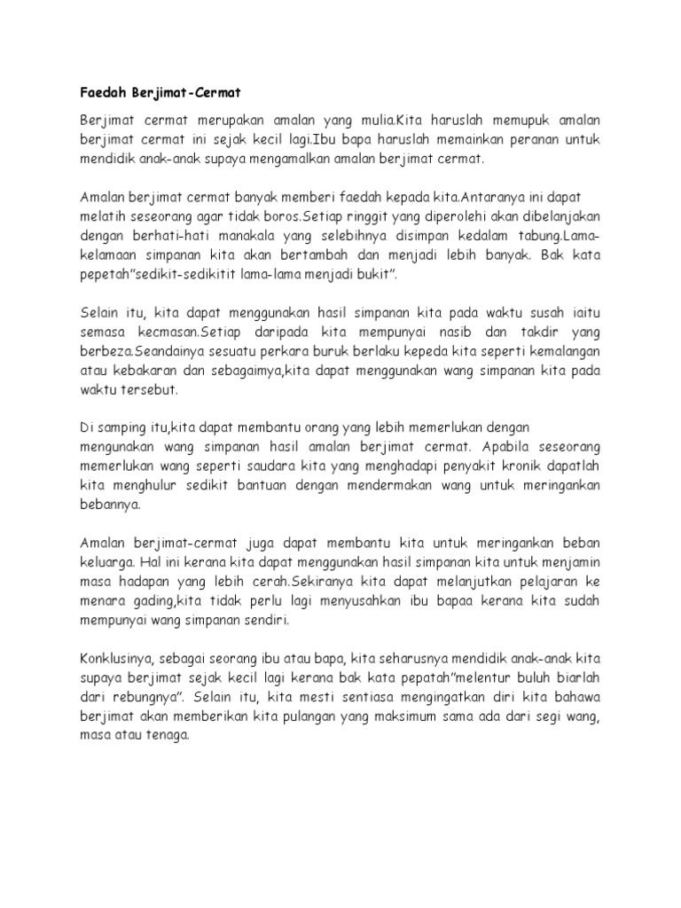 Contoh Karangan Faedah Berjimat Cermat Spm