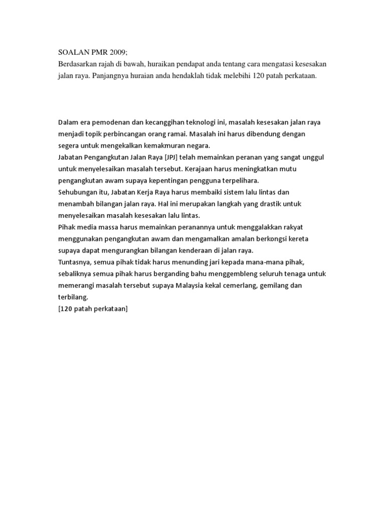 Laman Bahasa Melayu Spm Karangan Berpandu Rpogram Menyalin Karangan Cemerlang Langkah Langkah Mengatasi Kesesakan Jalan Raya