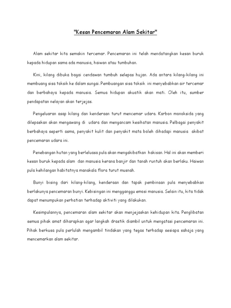 Kesan Pencemaran Alam Sekitar
