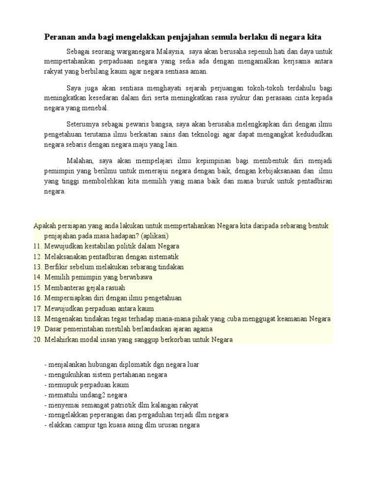 Peranan Anda Bagi Mengelakkan Penjajahan Semula Berlaku Di Negara Kita