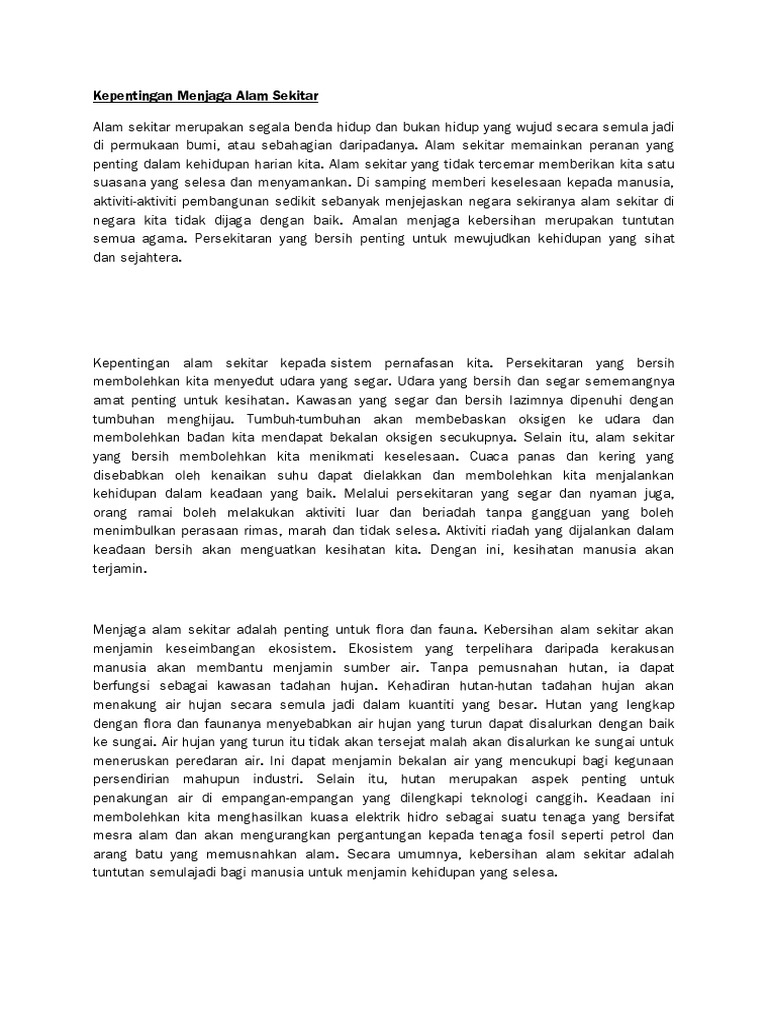Contoh Karangan Cara Cara Menjaga Alam Sekitar