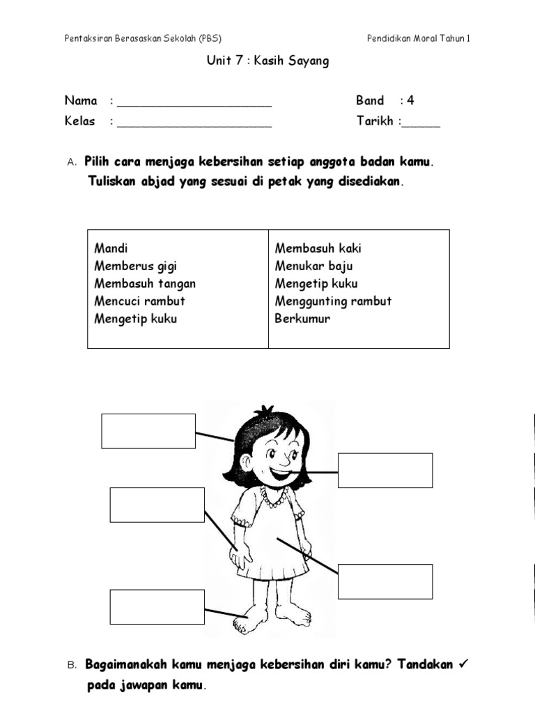 Nama Tahun 1 Tarikh Tandakan Pada Cara Menjaga Kebersihan Diri Yang Betul Atau X Bagi Yang Salah 1 5