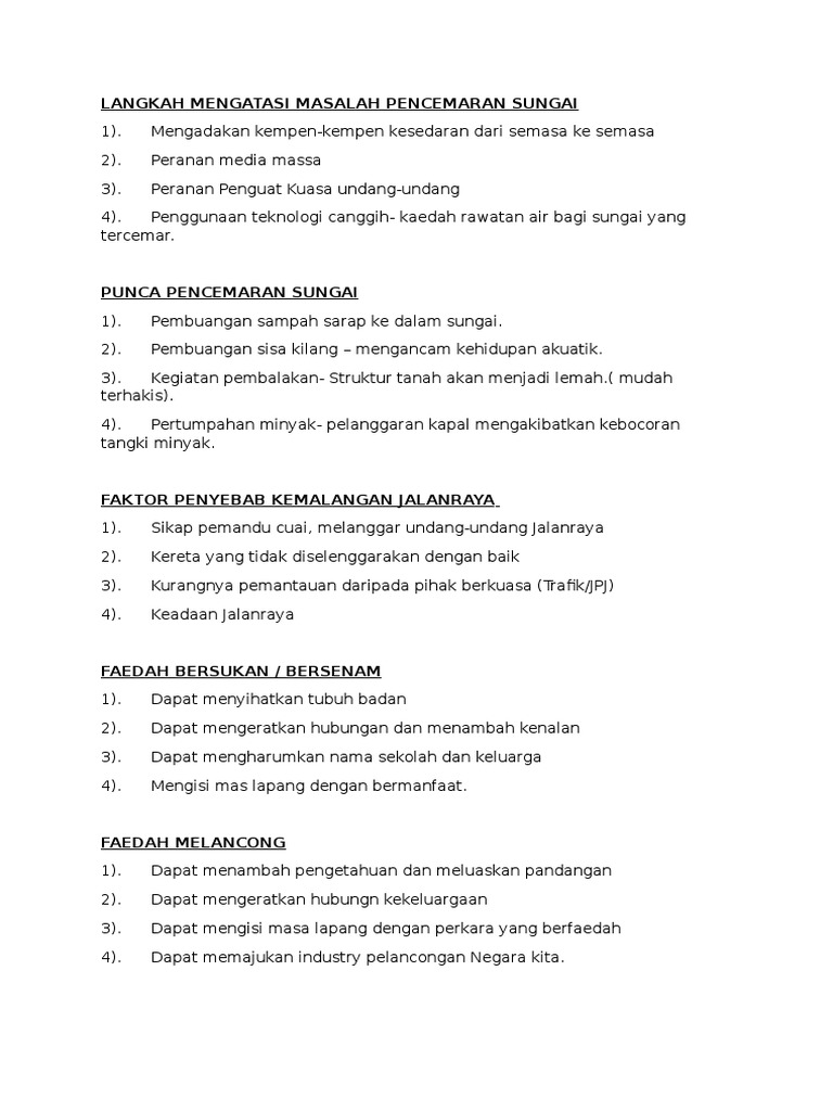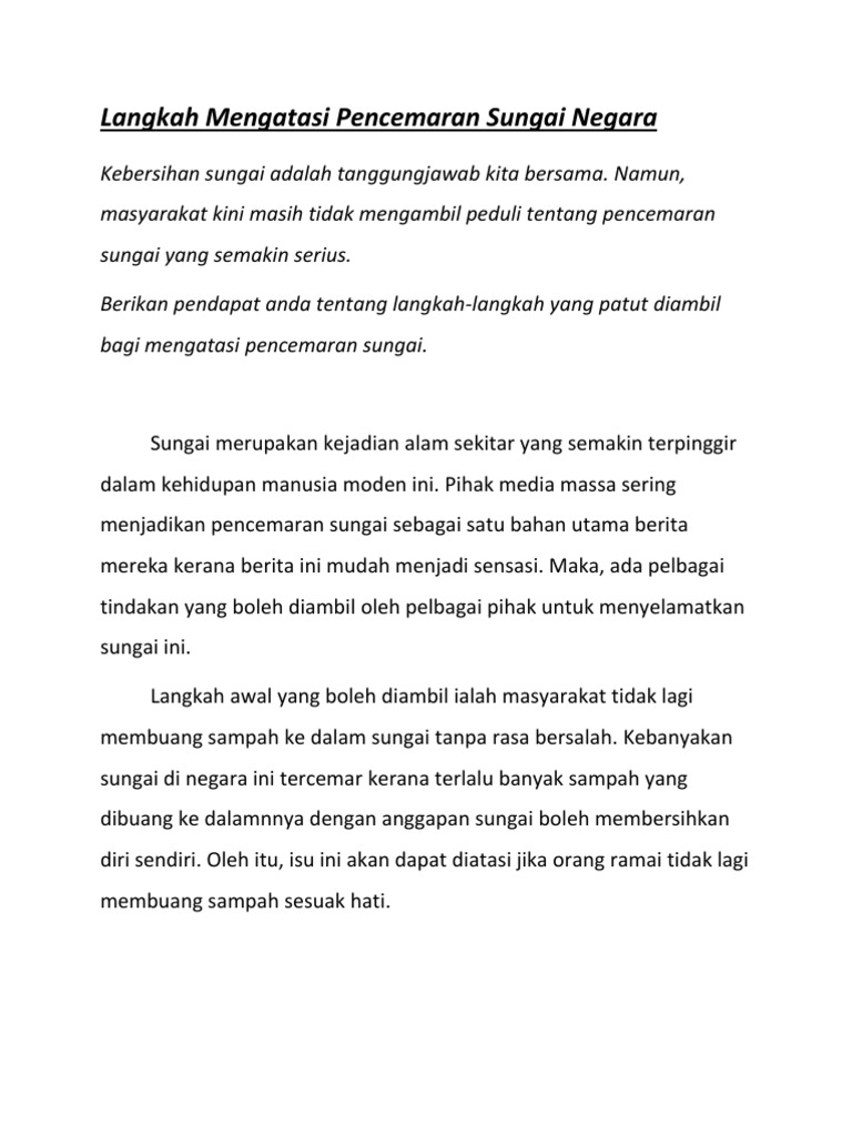 Bahasa Melayu Smk Taman Megah Ria Langkah Mengatasi Pencemaran Sungai