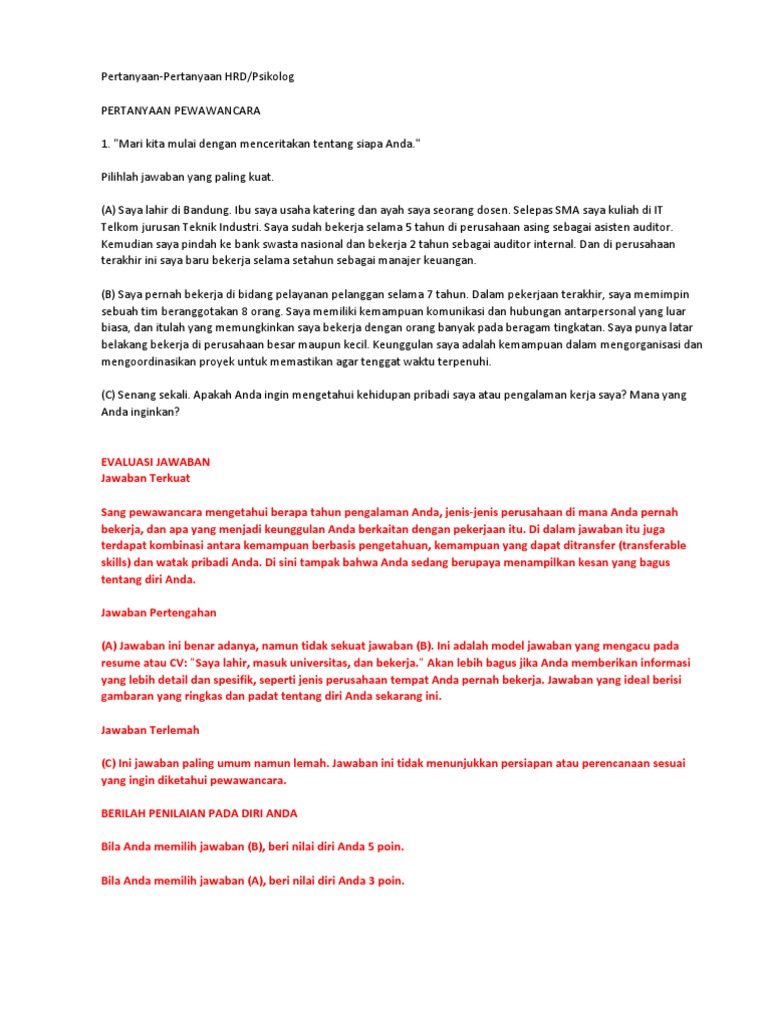 Contoh Dan Pembahasan Interview User Psikolog Hrd