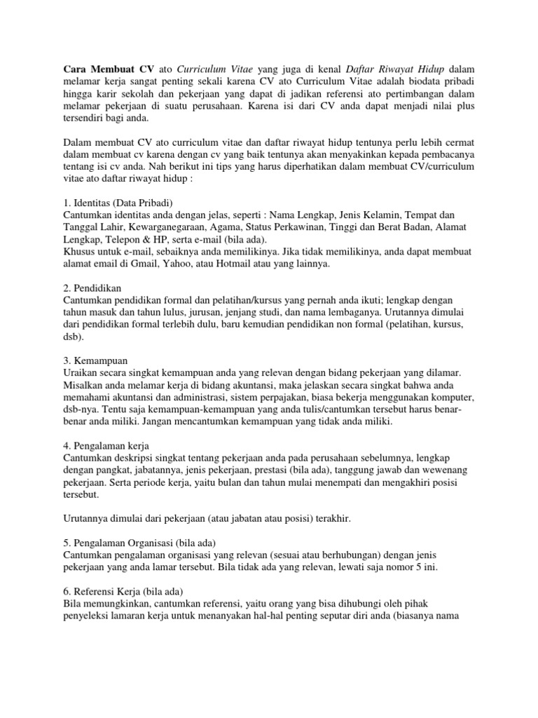 Cara Membuat Cv Ato Curriculum Vitae Yang Juga Di Kenal Daftar Riwayat Hidup Dalam Melamar Kerja Sangat Penting Sekali Karena Cv Ato Curriculum Vitae Adalah Biodata Pribadi Hingga Karir Sekolah Dan Pekerjaan