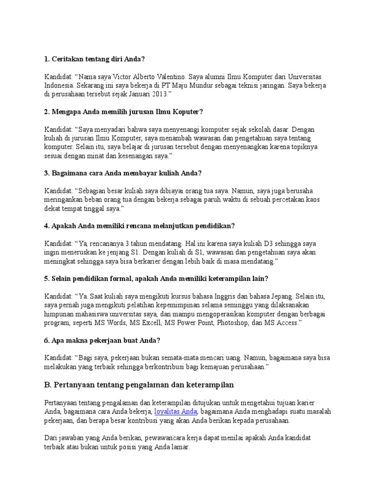 Contoh Jawaban Ceritakan Tentang Diri Anda Saat Interview Tips Kerja