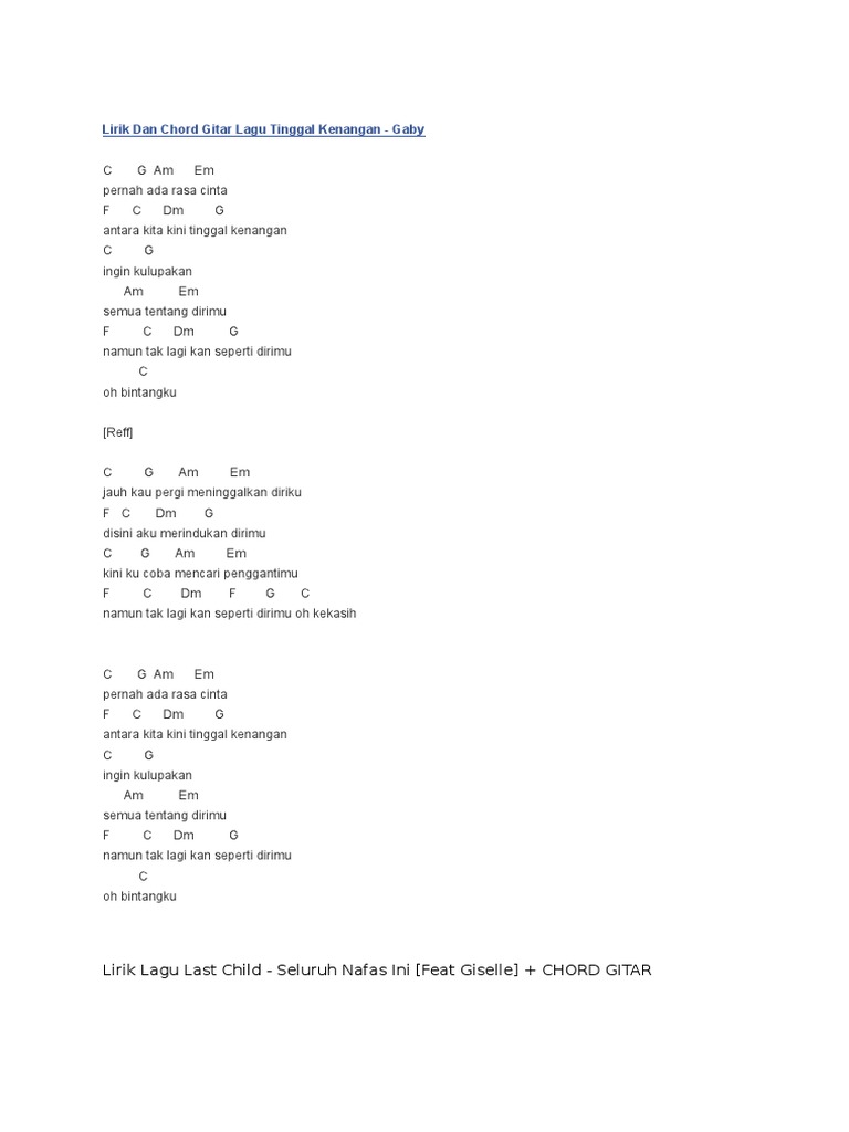 Doc Lirik Dan Chord Gitar Lagu Tinggal Kenangan Gaby Ribhi Azizi Academia Edu